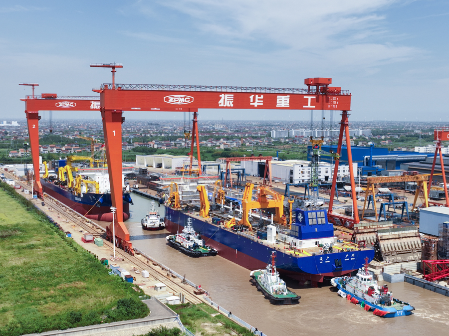 两艘超大型耙吸挖泥船的建造,是中国疏浚行业疏浚船舶装备迈入全球领先行列具有里程碑意义的重大成就。