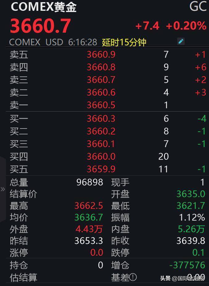 期货方面,COMEX黄金期货盘中最高触及3662.5美元/盎司,亦创下新高。